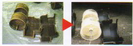 B 熱交換器(フィン)を高圧洗浄します。