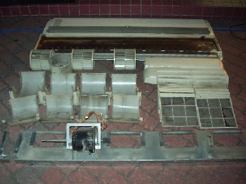 A パネル、ドレンパンなどどんどん分解し、それぞれ洗浄していきます